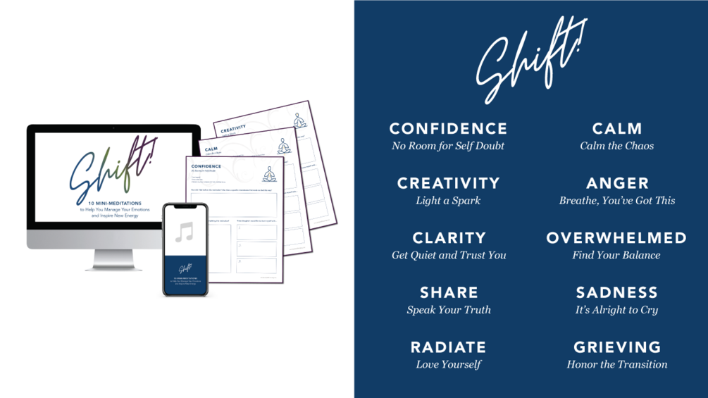 After your purchase of Shift! you will receive access to the 10 Mini-Meditations, worksheets and video files. This complete product series is here to meet you in your emotions and help you inspire a new energy flow. Enjoy!